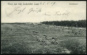 239 | 12 € | TRUPPENÜBUNGSPLÄTZE bis 1918 : LOCKSTEDTER/ LAGER/ *(HOLSTEIN)* 1907 (28.5.) 1K-Gitter = Hauspostamt Truppenübungsplatz klar auf s/w.-Foto-Ak.: Gruss aus dem Lockstedter Lager, Geschützpark (mit Protzen) Bedarf (Uhv. 31 701 Verl. Vahlendick, Lockstedter Lager 1907) | ![]() ![]() | |