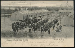 288 | 12 € | TRUPPENÜBUNGSPLÄTZE bis 1918 : SENNELAGER/ *(Kr.PADERBORN)/ a 1906 (5.8.) 1K-Gitter klar auf s/w.-Foto-Ak.: Barracke 14, 15, 16 (Kompanie-Aufstellung) Bedarf n. Idstein (Uhv.: L. Sprückmann, Paderborn 1906.. 11) | ![]() ![]() | |