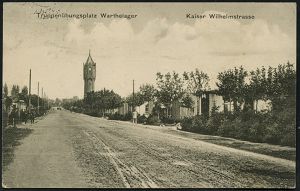 313 | 12 € | TRUPPENÜBUNGSPLÄTZE bis 1918 : WARTHELAGER/ TRUPPEN=/ ÜBUNGSPLATZ 1915 (5.5.) 1K-Brücke + viol. HdN: WARTHELAGER I. BATL. AUSB. + hs. Abs., s/w.-Feldpost-Foto-Ak.: Warthelager, Kaiser Wilhelmstrasse (mit Wasserturm) n. Solingen | ![]() ![]() | |