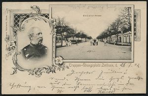 322 | 12 € | TRUPPENÜBUNGSPLÄTZE bis 1918 : ZEITHAIN-/ *UEBUNGSPLATZ/ a 1902 (26.7.) 1K-Gitter = Hauspostamt Truppenübungsplatz auf s/w.-Foto-Ak.: König-Albert-Strasse u. Brustbild König Albert, Bedarf (Uhv. Verlag Reinhardt, Riesa) | ![]() ![]() | |