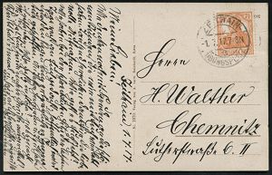 326 | 12 € | TRUPPENÜBUNGSPLÄTZE bis 1918 : ZEITHAIN-/ *ÜBUNGSPLATZ/ b 1906 (20.6.) 1K-Brücke mit UB "b" und "Ü" statt "UE" = Hauspostamt Truppenübungsplatz auf Color-Foto-Ak.: Planitz Strasse n. Leipzig (Mi.85) | ![]() ![]() | |