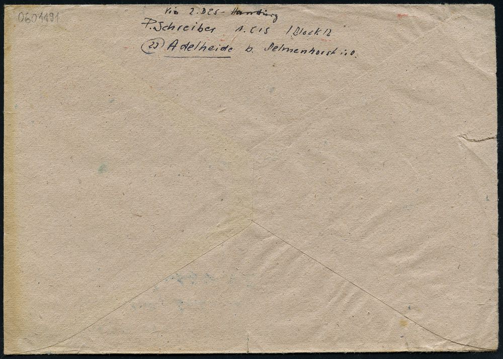 3515 | 22 € | WESTZONEN / BIZONE / TRIZONE (BIS 1949) : BONN/ 1/ GEBÜHR/ BEZAHLT 1948 (20.3.) PFS "Achteck" ohne Wertziffer + viol. 2K-HdN: C. I. C. POST/PORTO-FREI = Zivil-Interniertenlager Adelheide , rs. hs. Abs., hs. Vermerk "Via 2 DCS Hamburg" (Bf. Tintenfleckchen) seltener, portofreie Internierten-Bf. n. Delmenhorst, vs.AS (Dü.D-9, Nr. 245) | ![]() ![]() | |