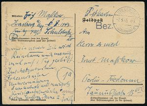 3727 | 30 € | SOWJETISCHE BESATZUNGSZONE (1945-49) : STRASBURG/ (UCKERMARK)/ b 1945 (7.9.) b l a u e 1K-Brücke + viol. 1L: B e z.(ahlt) , frühe, aptierte Feldpost-Kt. n. West-Berlin !, seltener Beleg! | ![]() ![]() | |