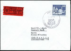 3970 | 16 € | GESCHICHTE VON BERLIN : Berlin SW 11 1951 (30.5./4.6.) viol. 3L: Zollamt I Post/ Berlin-Luckenwalder Str./ (beim Postamt SW 11) auf Devisen-Zensurstreifen: Zur/ Devisennachschau/ zollamtlich geöffnet (rs.) Frankatur U.S.A. 15 C. aus Lowell, Mass., Ausl.-Flp.-Devisen-Zensur-Bf. | ![]() ![]() | |