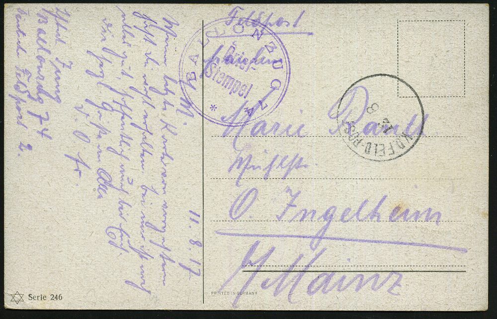 514 | 18 € | I. WELTKRIEG: BALLON / BALLON-FELDPOST : DEUTSCHES REICH 1917 (25.8.) aptierter 1K: K. D. FELDPOST = Tarnstempel + viol. 2K-HdN: B A L L O N Z U G 74/* + hs. Abs. (Dt. Feldpost 2) klar gest. Feldpost-Kt. (Riß geschl.) n. Ingelheim | ![]() | |